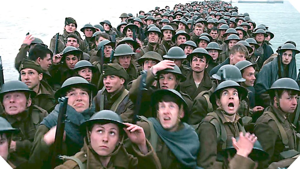 Eschewing the gore-filled realism of “Pvt. Ryan” (or “Hacksaw”), Nolan prefers to build anxiety, tension, dreadful anticipation and abject fear with practically no blood at all. He leaves the specifics of what happens to a body in the aftermath of war to the imagination. And, by focusing on the emotional and constant impact of “when will they hit us next”, he connects us, as close as any film has, to a basic, yet empathetic, understanding of how PTSD affects EVERYONE involved in battle. This is the film’s greatest and, ultimately, longest-lasting contribution to cinema. But that’s for long discussions/arguments over coffee, in the safe confines of our homes and restaurants after we’ve experienced the film. What about the film itself?