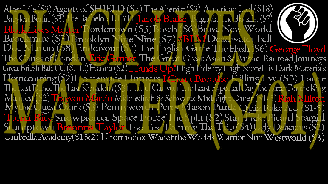 Look, I am quite aware of how frivolous it is to discuss the absurd amount of television I watch while people are dying in hospitals due to the pandemic, or marching in the streets due to the longest running show in America (currently in its 401st season) known as “Institutionalized Racism”, most notably doled out in our current culture by the police on the African American community. This dawned on me as I was creating the main graphic for this post…and I thought that it’s sort of paramount for those who write public things to consistently and constantly reinforce that Black lives ALWAYS matter – and always have.